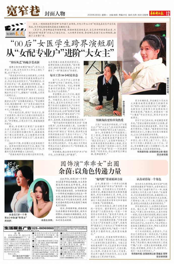 对于未来的规划,余茵表示,不会将自己局限在某一种形式里:“长剧短剧只是展现给大家的形式,只要是适合我的角色,我都会努力去对待、努力去争取。”采访最后,她也向粉丝送上真诚叮嘱:“大家一定要注意身体健康,好好吃饭,好好睡觉,好好工作,好好学习,我们一起成为更好的人。”华西都市报-封面新闻记者 雷蕴含 周琴 受访者供图