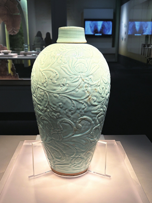 行至展览第二单元,一片“千峰翠色”映入眼帘,绿如翡翠温润如春水的荷叶盖罐、造型挺拔秀丽如少女般优美的带盖梅瓶……这些精美的瓷器,为人们遥望遂宁的宋代风雅打开了一扇窗。“唐宋时期遂宁的风物,主要通过遂宁金鱼村宋代窖藏精品文物来呈现。”