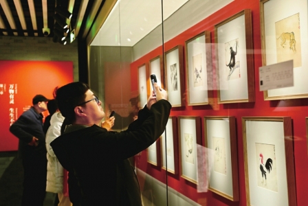 2月10日下午,观众在观看马年徐悲鸿艺术特展。