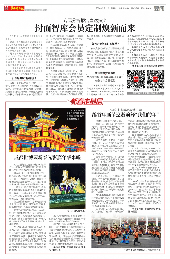 嘉年华于2月10日18点30分正式开园亮灯迎客。活动汇聚“南北年味”,精心打造了一场集观灯、赏演、逛集于一体的沉浸式光影嘉年华。2月9日,华西都市报、封面新闻记者提前探访现场。
