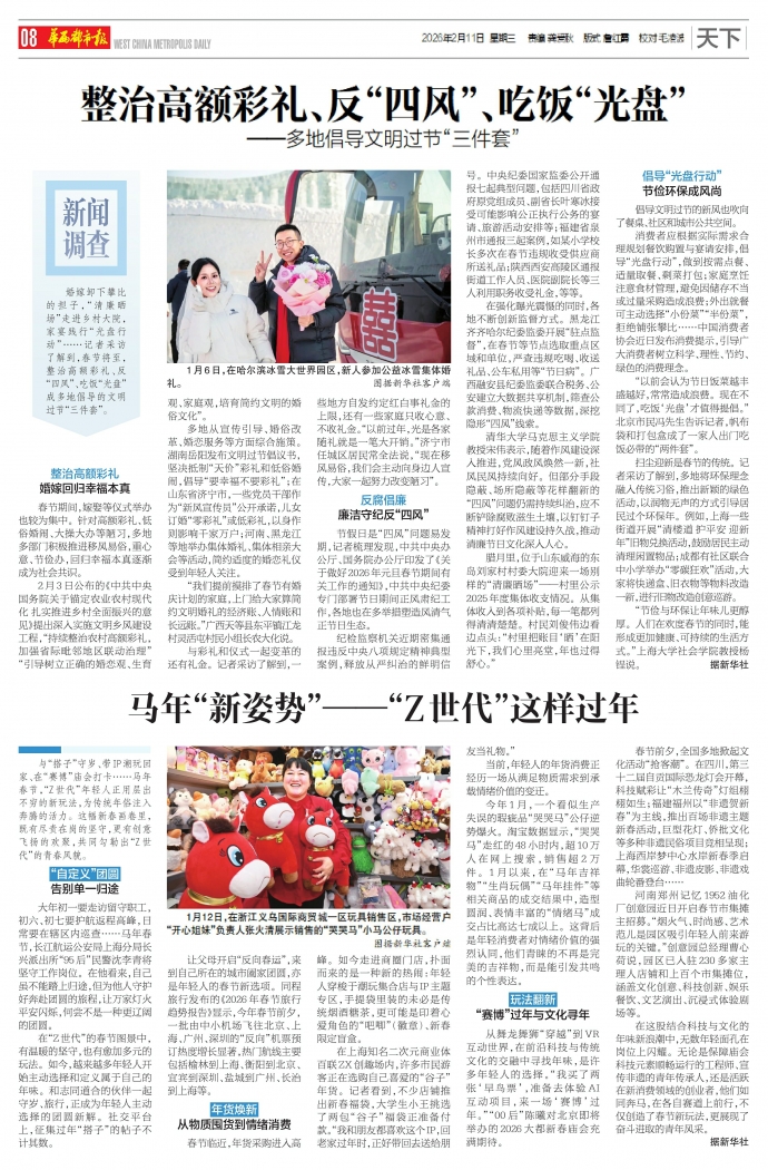 倡导文明过节的新风也吹向了餐桌、社区和城市公共空间。
