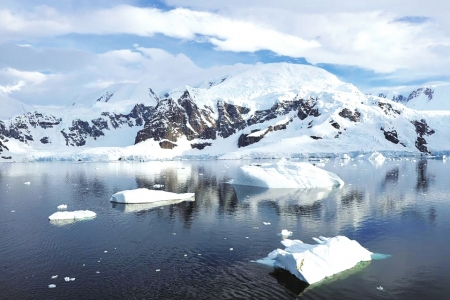 2025年12月13日在南极洲拍摄的一处雪山和浮冰。