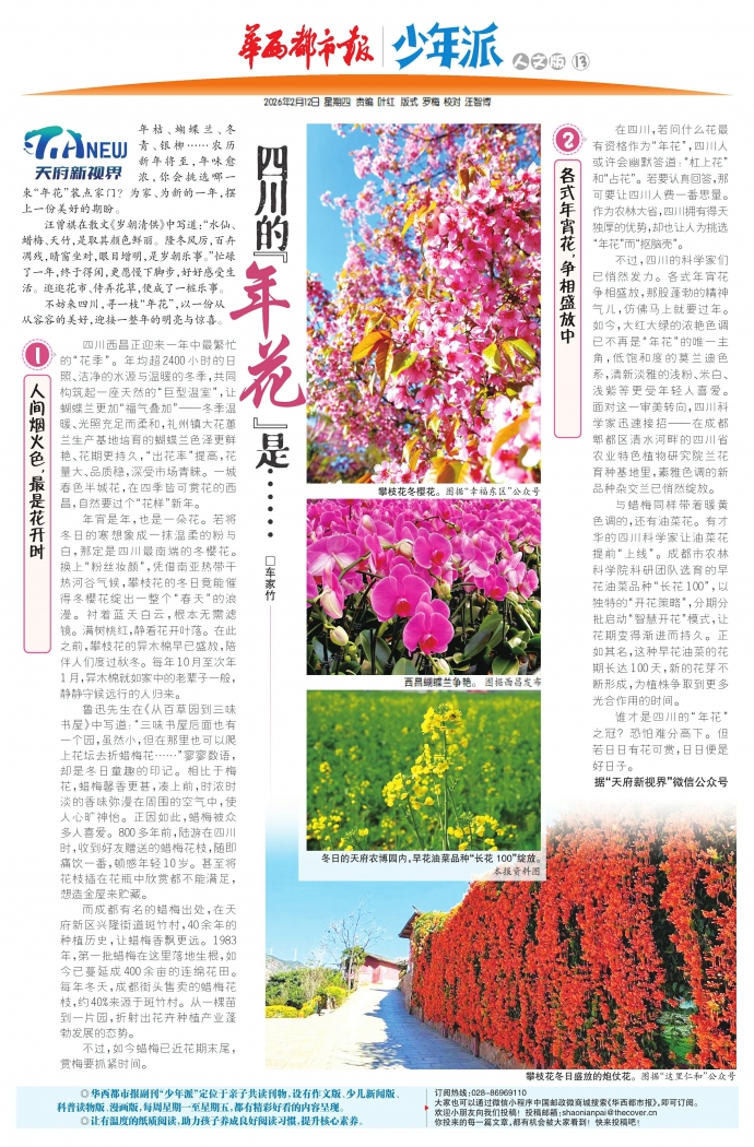 谁才是四川的“年花”之冠?恐怕难分高下。但若日日有花可赏,日日便是好日子。据“天府新视界”微信公众号