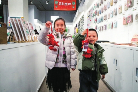 1月17日,在山东滕州博物馆文创商店,一个小朋友选购“踏马游春”文创摆件。