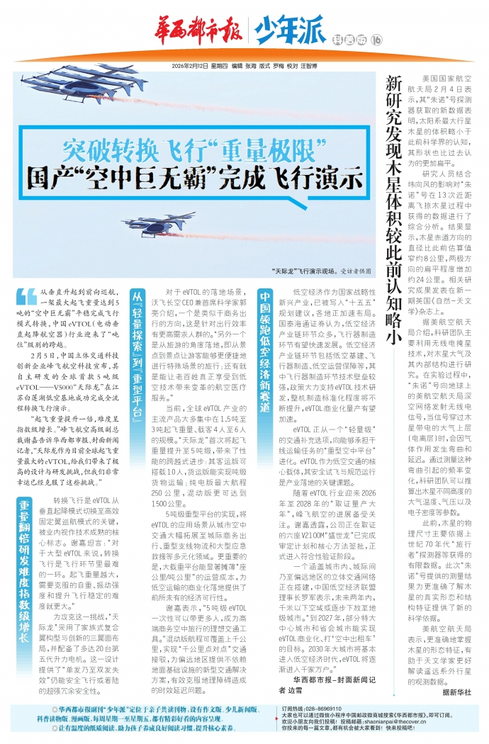 “起飞重量提升一倍,难度呈指数级增长。”峰飞航空高级副总裁谢嘉告诉华西都市报、封面新闻记者,“天际龙作为目前全球起飞重量最大的eVTOL,给我们带来了极高的设计与研发挑战,但我们非常幸运已经克服了这些挑战。”