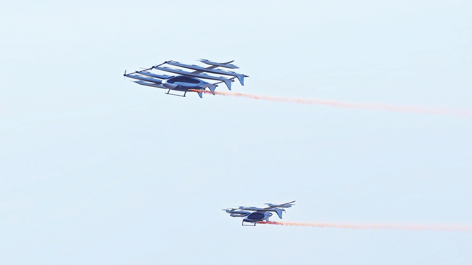 从垂直升起到前向巡航,一架最大起飞重量达到5吨的“空中巨无霸”平稳完成飞行模式转换,中国eVTOL(电动垂直起降航空器)行业迎来了“吨位”级别的跨越。