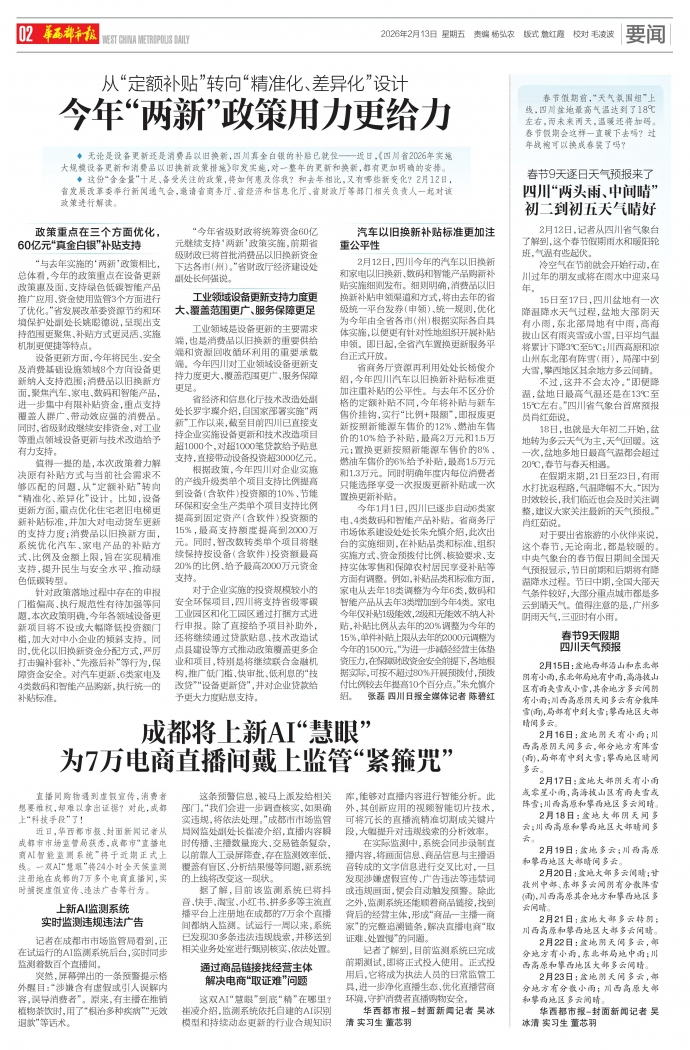 无论是设备更新还是消费品以旧换新,四川真金白银的补贴已就位——近日,《四川省2026年实施大规模设备更新和消费品以旧换新政策措施》印发实施,对一整年的更新和换新,都有更加明确的安排。