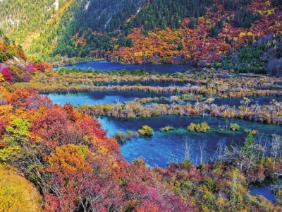 顺长海而下,便是五花海。它好似灵动的川妹子,湖底钙华沉积、腐殖质与矿物质在阳光折射下,交织出蓝、绿、黄、橙的斑斓光影。秋日更是盛装出场——彩林倒映湖中,虚实交融,宛如大自然挥就的水彩长卷。这般景致并非偶然,唯有森林、湿地、湖泊系统健康运转,方能外化如此生机。