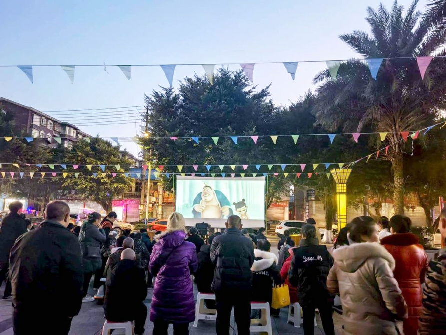 截至2月19日,成都新春公益电影放映活动已覆盖全市23个区(市)县近200个点位,放映场次达600余场,惠及群众超4万人次,发放新春礼品3000余份。在都江堰市、成都市武侯区、彭州市等地的社区广场、公园绿地,一场场家门口的光影盛宴,将文化惠民的温暖与新春祝福送到市民身边。