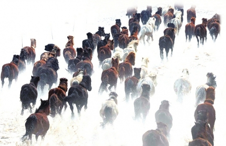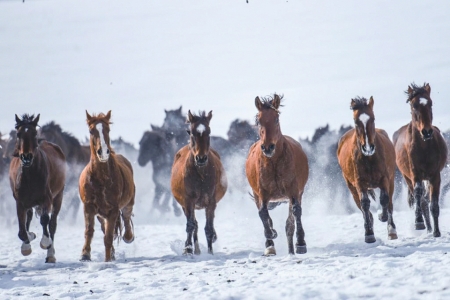 新疆伊犁哈萨克自治州昭苏县天马旅游文化园内驰骋的骏马。