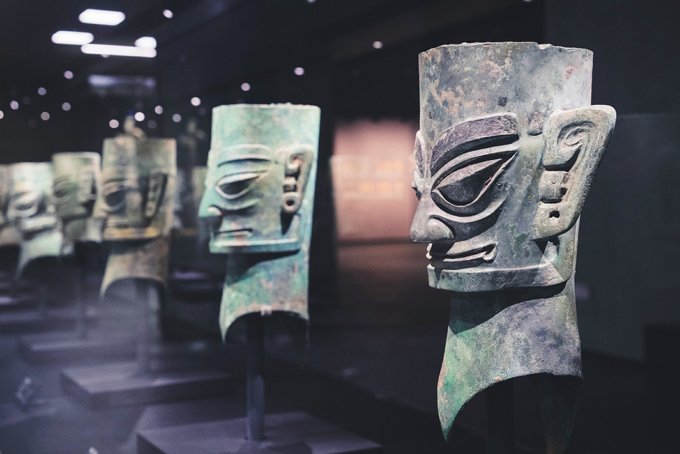 三星堆博物馆展出的青铜人头像。图据三星堆博物馆