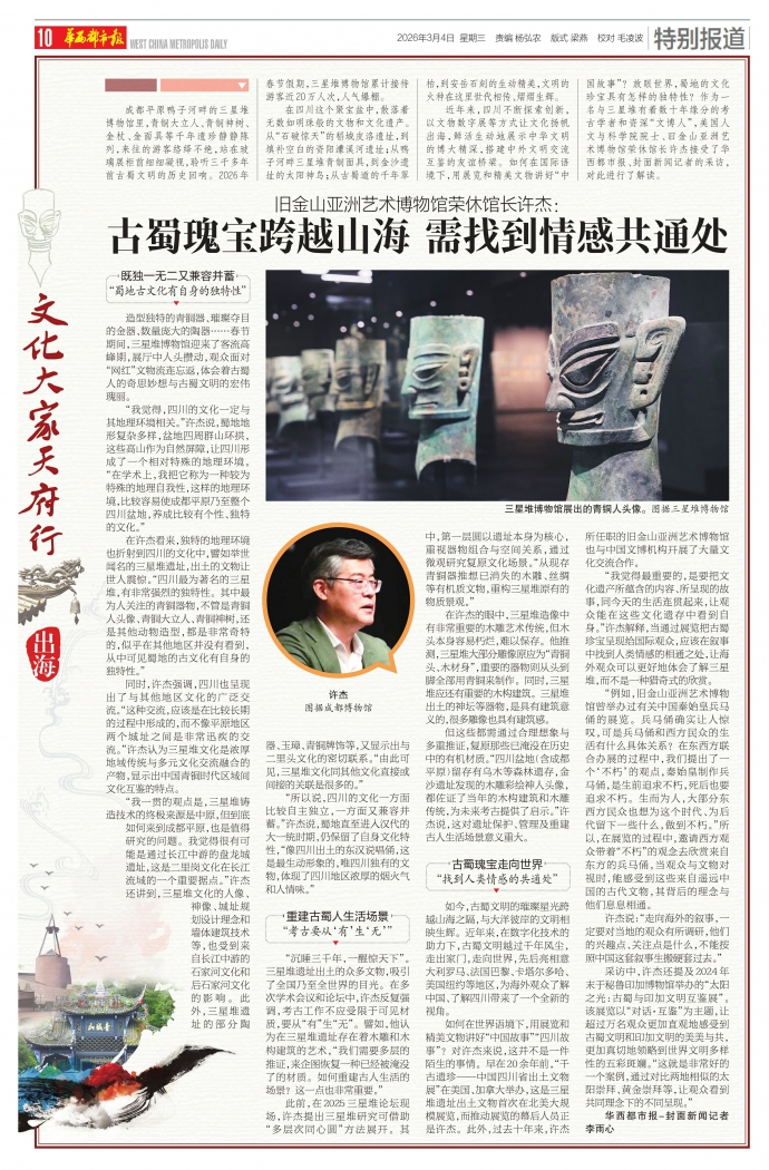 近年来,四川不断探索创新,以文物数字展等方式让文化扬帆出海,鲜活生动地展示中华文明的博大精深,搭建中外文明交流互鉴的友谊桥梁。如何在国际语境下,用展览和精美文物讲好“中国故事”?放眼世界,蜀地的文化珍宝具有怎样的独特性?作为一名与三星堆有着数十年缘分的考古学者和资深“文博人”,美国人文与科学院院士、旧金山亚洲艺术博物馆荣休馆长许杰接受了华西都市报、封面新闻记者的采访,对此进行了解读。