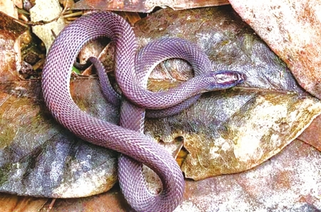 括苍山脊蛇是半穴居小型无毒蛇类,该物种成年雄性体全长不足30厘米,雌性可达40厘米,主要以蚯蚓为食,常躲藏于地表落叶层、倒木或其他遮蔽物下。该种通身背面呈褐色至深褐色、无颊鳞、最外行背鳞明显起棱等特征可明显区别于近缘物种。目前该种已知仅分布于浙江括苍山脉海拔150米至900米的阔叶林。