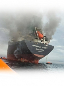 这张泰国海军3月11日发布的照片显示,一艘泰国货船在霍尔木兹海峡海域遭袭起火。
