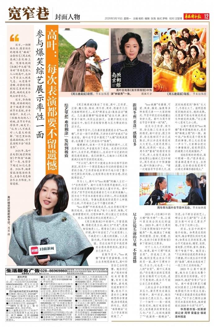 高叶:每次表演都要不留遗憾