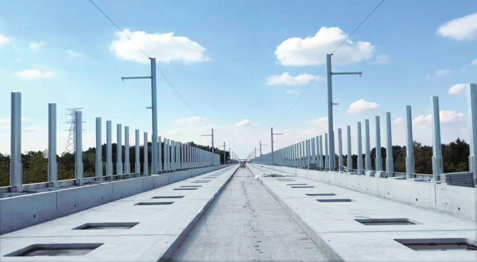 成渝中线高铁简阳段进入关键冲刺阶段。记者从简阳市获悉,简阳段全长约36.6公里,目前无砟轨道铺设已全面展开,预计今年5月底完成所有铺轨工作。成渝中线高铁是我国“八纵八横”高铁网沿江通道的重要组成部分,预计2027年建成通车,届时成渝双城通行时间将压缩至50分钟,打造1小时通勤圈,推动双城同城化发展。