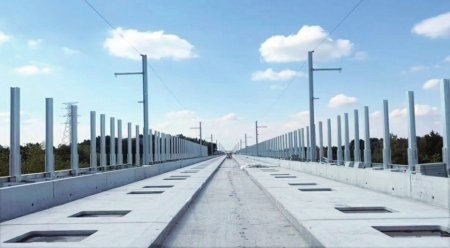 绵遂资内铁路绵阳至遂宁段也迎来重大进展:首榀箱梁成功架设,项目从下部基础施工转入上部结构施工。该段线路计划于2028年建成通车,将结束三台县、射洪市不通铁路的历史,进一步完善川北、川南、川中区域城际铁路环线,对于促进沿线区域社会经济发展,加快推动成渝地区双城经济圈综合交通运输体系建设具有重大意义。