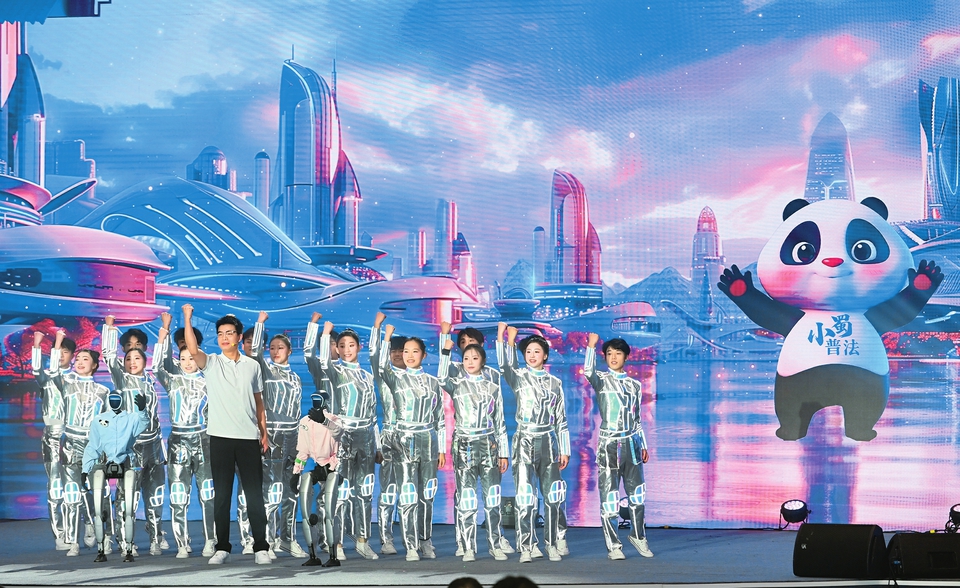 来自2035年的智能普法机器人“未央”和四川普法数字IP“小蜀”一同演绎“未来的法治”。雷远东 摄