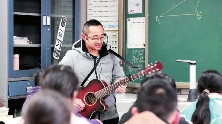 学生考试失利、班级成绩不佳时,毛先兵从不大声指责,而是抱着吉他弹唱自己创作的歌曲,用旋律安抚学生情绪。“用音乐感动他们,传递点正能量,比硬邦邦的批评管用多了。”他说。