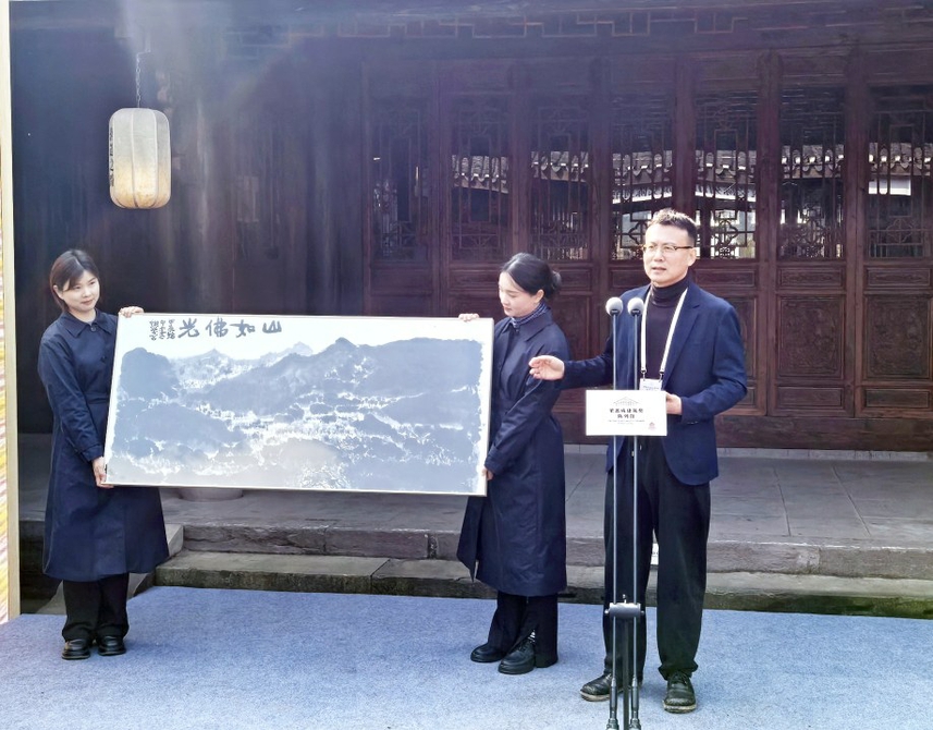李兴钢院士向陈列馆捐赠画作“水墨佛光寺”。