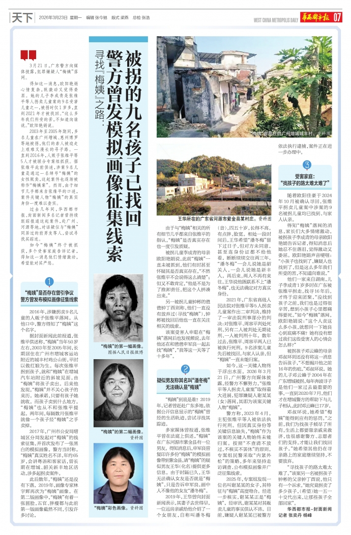 3月21日,广东警方向媒体披露,犯罪嫌疑人“梅姨”落网。