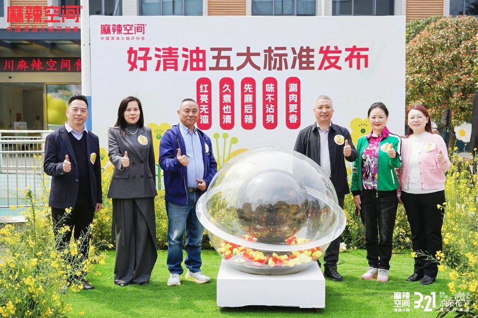 3月21日,麻辣空间第九届“321清轻油菜花节”暨清油火锅品质标准发布会在成都郫都区隆重启幕。该活动不仅是品牌自身的节庆,更升格为一场关乎行业未来的品质发布会。会上,作为中国清油火锅的开创者,麻辣空间凭借二十一载对清油的极致专注与全产业链掌控,率先在行业重磅发布“好清油五大金标准”,以可量化、可感知、可监督的硬性指标,直面市场痛点,为清油火锅这一细分品类建立了首套权威的品质与价值评判体系,标志着行业发展从野蛮生长迈入标准化、透明化的新阶段。