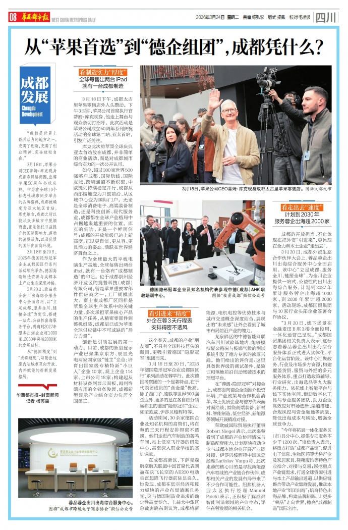从“德国精度”到“成都速度”,勾勒出这座内陆城市双向开放、内外赋能的崭新发展格局。