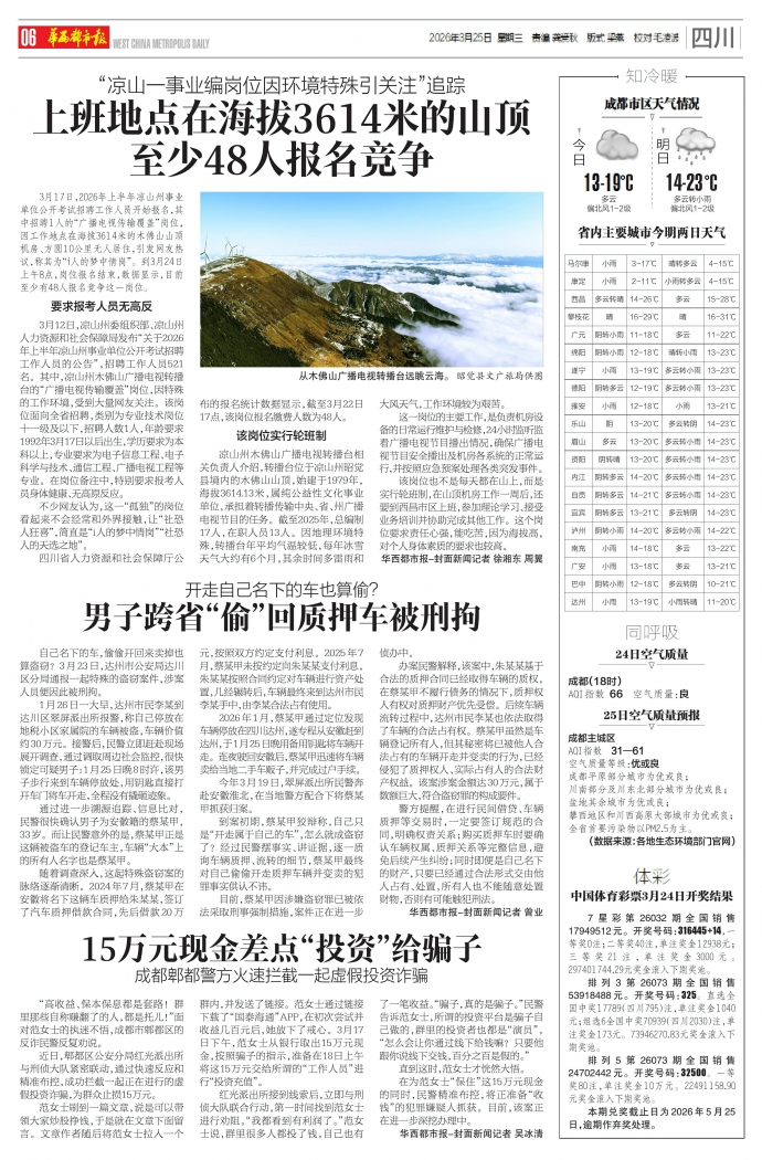 排列 3 第 26073 期全国销售53918488元。开奖号码:325。直选全国中奖17789(四川795)注,单注奖金1040元;组选6全国中奖70939(四川2030)注,单注奖金173元。73946270.83元奖金滚入下期奖池。