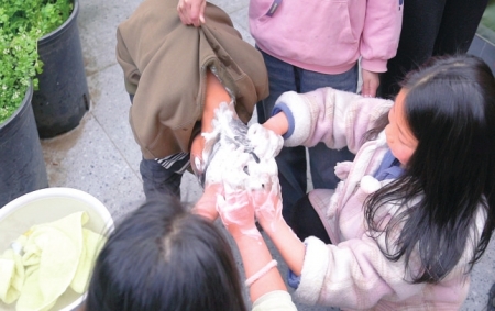 阳台正中,“张妈”忙着晾衣服,4个两米多长的晾衣架,挂满校服、毛衣、秋衣,件件平整。晾干收好,总有孩子主动跑来,抱回自己的寝室。寝室分男女宿舍,上下铺,被子叠得方方正正,床下摆放着码数不等的拖鞋、凉鞋、运动鞋,每一双都对应着一个孩子的日常。