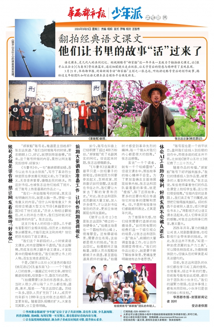 3月21日,华西都市报、封面新闻专访“郝家豁”主创之一张志远,听他讲述账号背后的创作故事,揭秘这支年轻团队如何让语文课本在自媒体平台焕发新生。