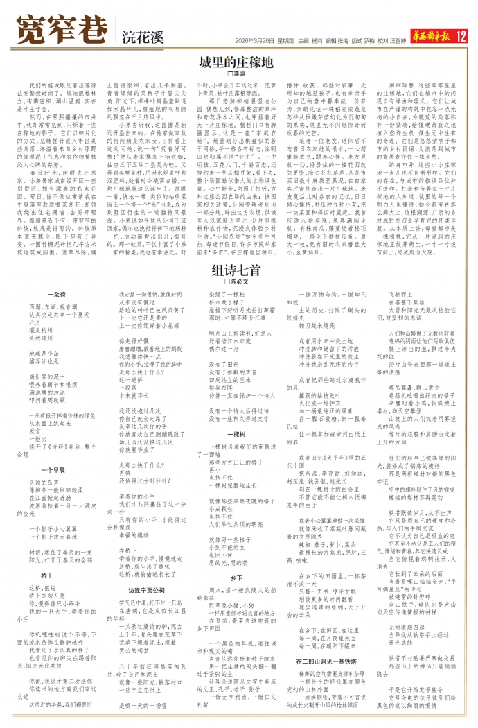 然而,在熙熙攘攘的市井中,我却常常见到,闪烁着一些庄稼地的影子。它们以碎片化的方式,见缝插针嵌入市区某些角落,洋溢着来自乡村原野的腥湿泥土气息和农作物植株沁人心脾的芬芳。