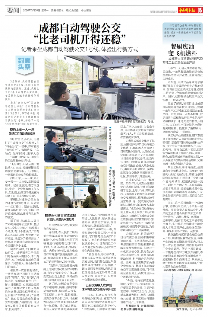 记者乘坐成都自动驾驶公交1号线,体验出行新方式