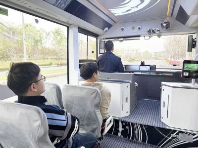 记者体验成都自动驾驶公交1号线。