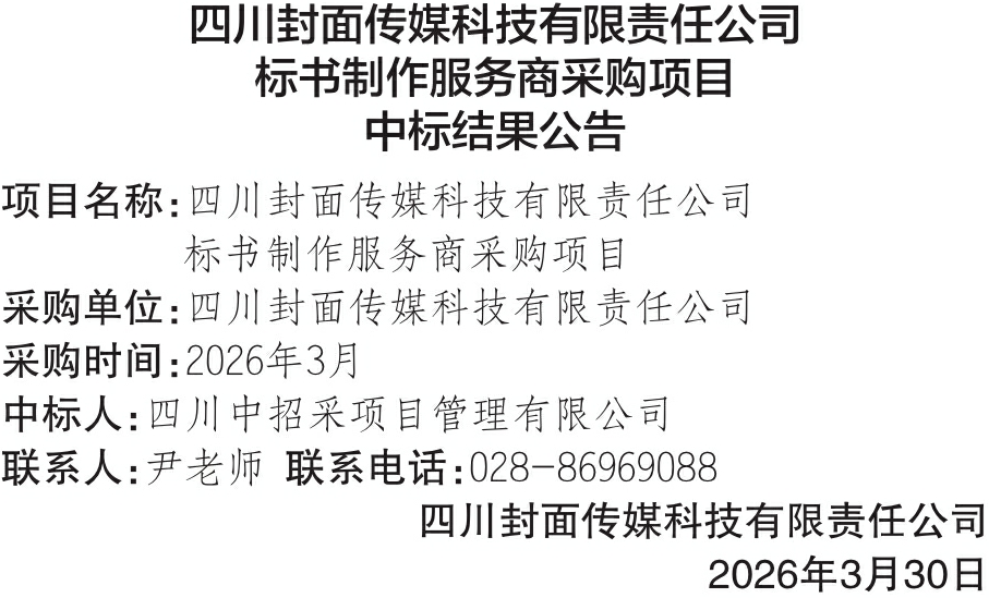 四川封面传媒科技有限责任公司标书制作服务商采购项目中标结果公告