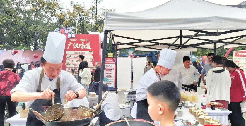 广汉作为这一次开场表演的举办方,也将广汉特色搬到了现场。广汉火锅的味道飘满了整个体育场。“毛肚火锅现场撕现场煮现场吃,真的太棒了。”当天下午,不少球迷纷纷排队感受这一份热情。