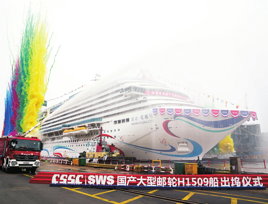 3月20日,第二艘国产大型邮轮“爱达·花城号”在上海出坞。