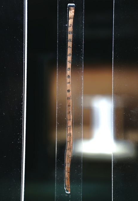 这是在江西南昌汉代海昏侯国遗址博物馆拍摄的齐《论语·智道》简,其上文字为“孔子智道之昜也昜昜云者三日子曰此道之美也莫之御也”。新华社记者 万象 摄
