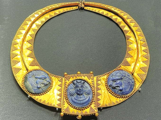 展出的青金石饰黄金项圈。李雨心 摄