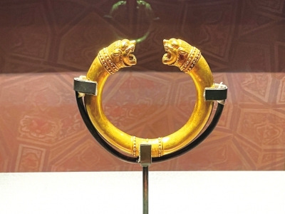 展出的黄金狮首授权环。李雨心 摄