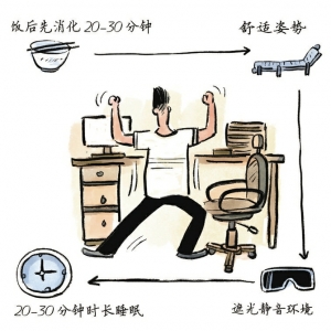 长+饭后先消化20至30分钟+舒适姿势+遮光静音环境,就能告别“越睡越累”,真正实现午睡的好处,降低心脑血管疾病发病风险、提升工作效率。