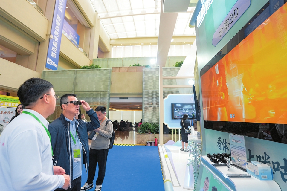 4月15日,参会者在创新展交区体验3D视听交互设备。新华社记者王曦摄