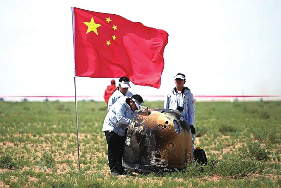 2024年6月25日14时7分,嫦娥六号返回器携带来自月背的月球样品安全着陆在内蒙古四子王旗预定区域。新华社记者 贝赫 摄