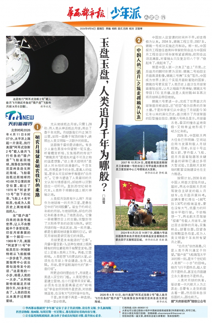 “白月光”依然高悬,只是人类不再只满足于仰望。“猎户座”飞船溅落太平洋的那一刻,是半个世纪前人类那“一小步”的回响。绕月飞行不是终点,载人登月不是终点,甚至在月面建立永久基地也不是终点。