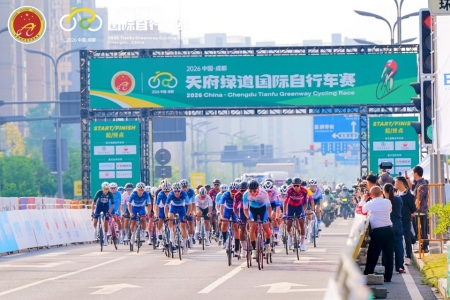 天府绿道国际自行车赛比赛现场。
