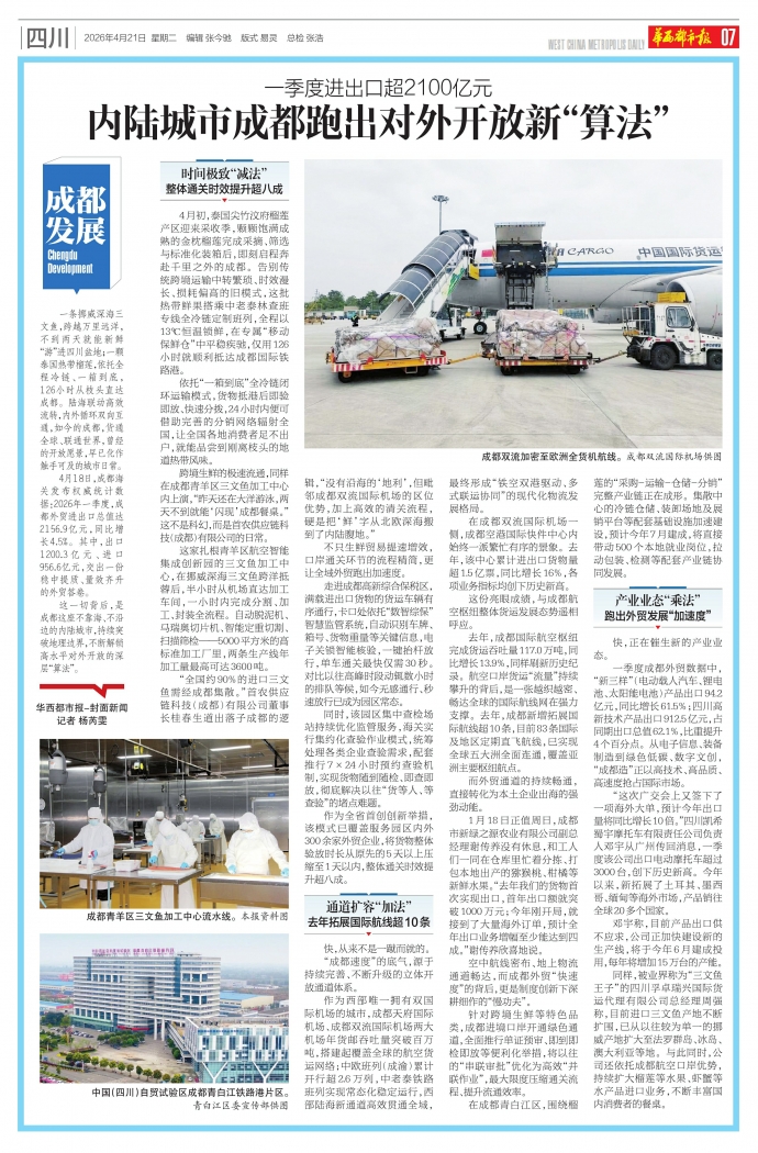 快,从来不是一蹴而就的。“成都速度”的底气,源于持续完善、不断升级的立体开放通道体系。