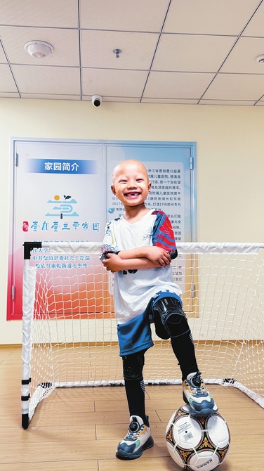 瑞瑞喜欢踢足球,“我上幼儿园就开始踢球了,每天放学后就和哥哥在家门口的空地上踢。”在兰草家园,他也会和其他同住的小朋友在活动室追逐着足球,忘记了病痛的烦恼。瑞瑞自信地说:“在这里没有比我踢得更好的小朋友。”