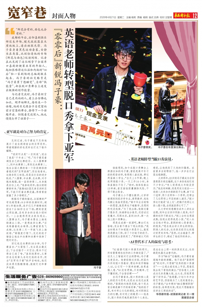 英语老师转型脱口秀拿下亚军
