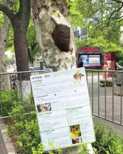4月22日,在校外参加世界地球日活动时,他特意找到现场的两位养蜂专家,加了微信。他在为这群蜜蜂的下一步做打算:那棵悬铃木毕竟位于主干道上,人流量大,如果需要,就求助专家,把它们迁移到附近更安全的地方。