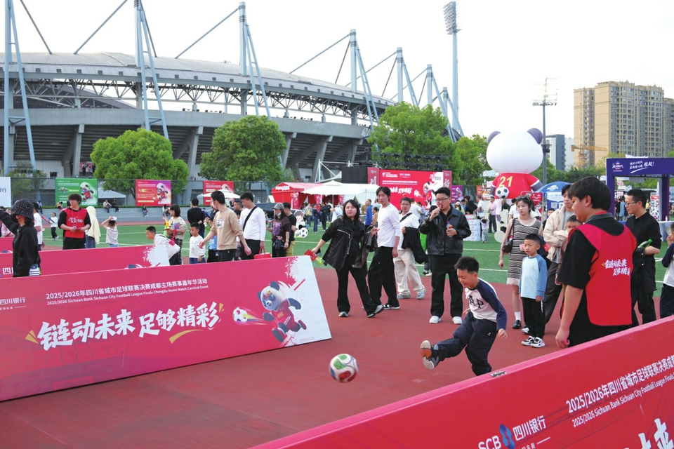4月4日,川超决赛阶段成都队对阵宜宾队赛前,球迷体验足球嘉年华。 陈羽啸摄