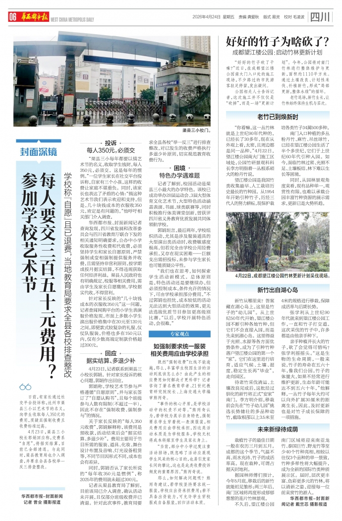 参加学校艺术节 每人要交三百五十元费用?